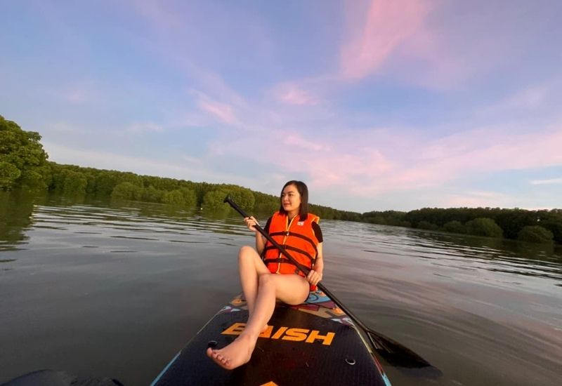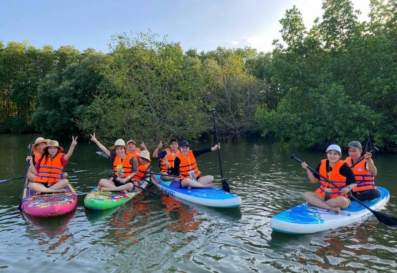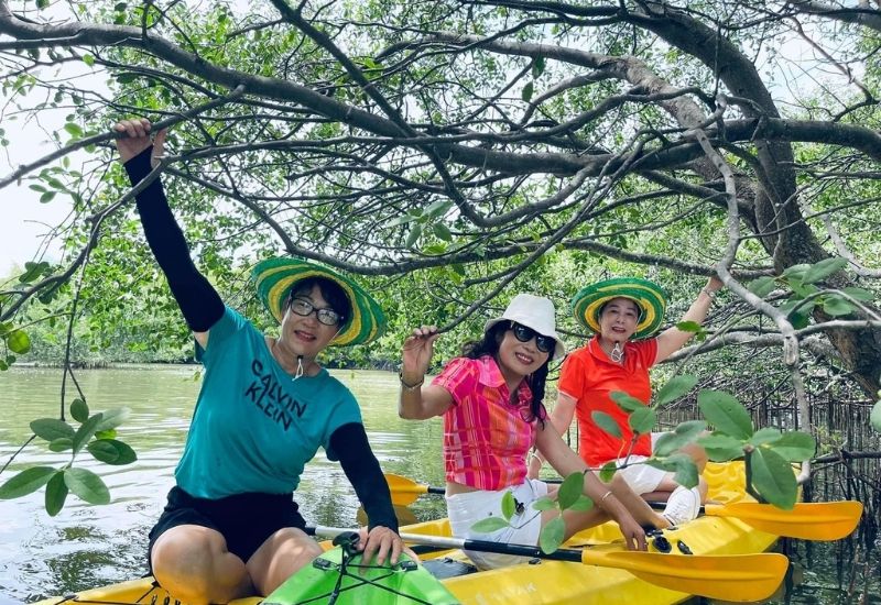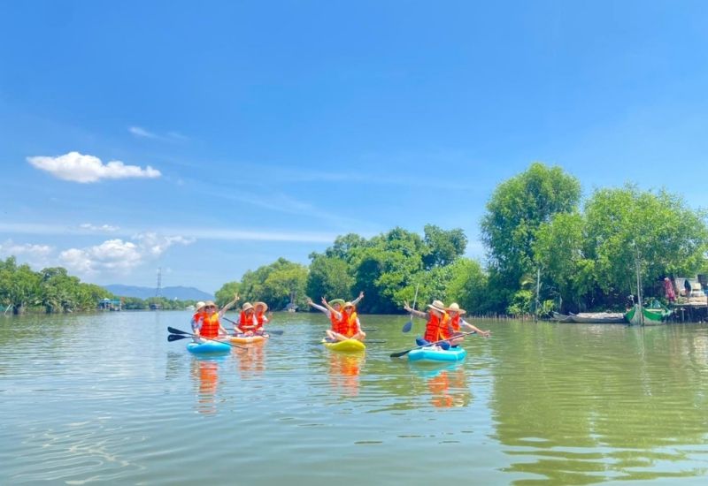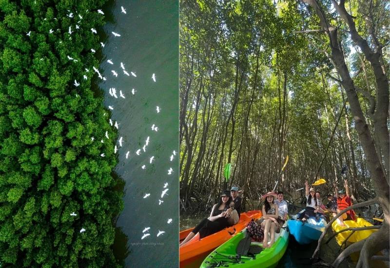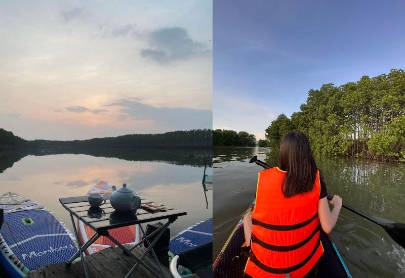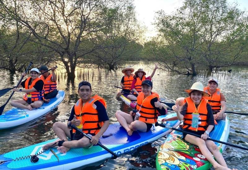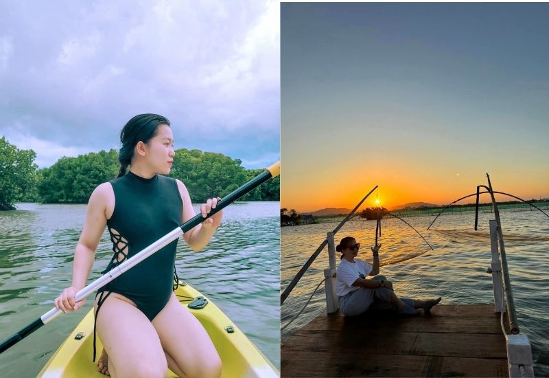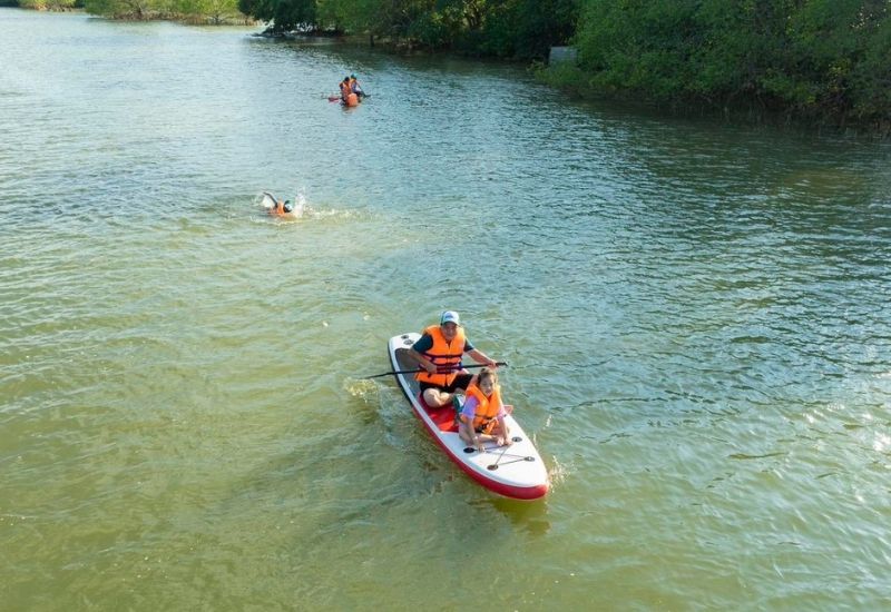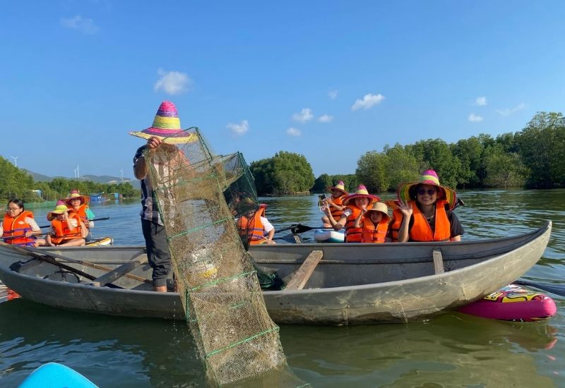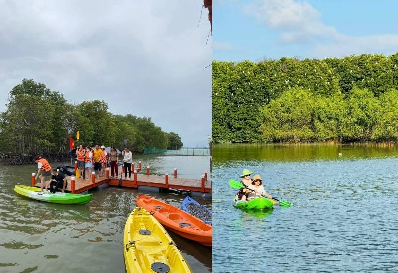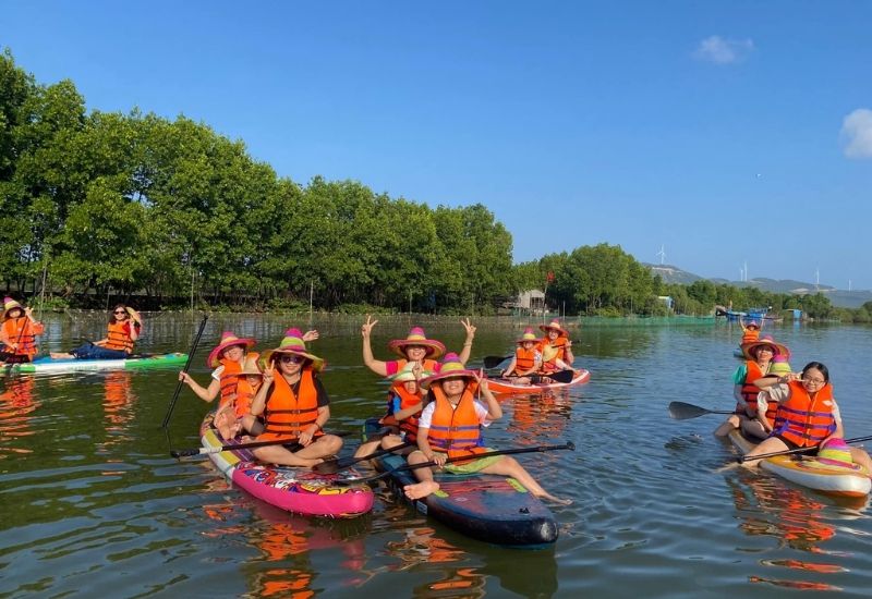 - Tham gia thử thách chèo thuyền trong cồn chim