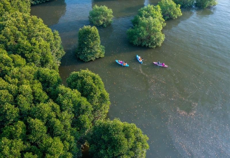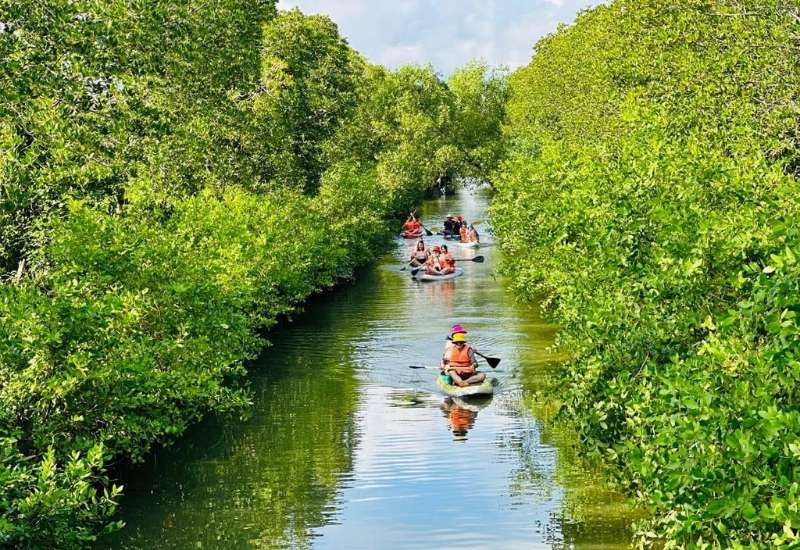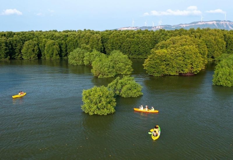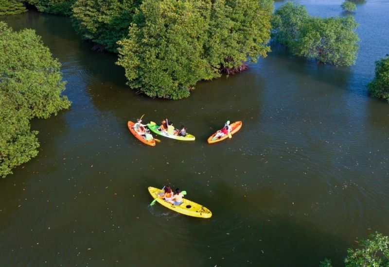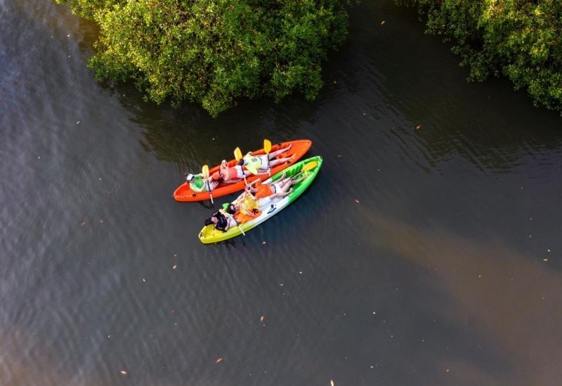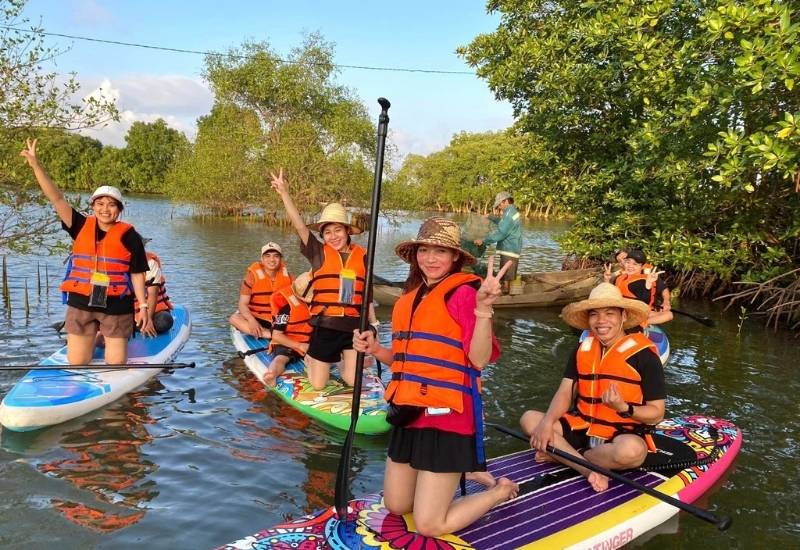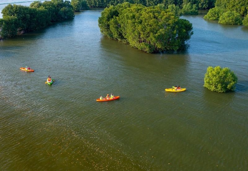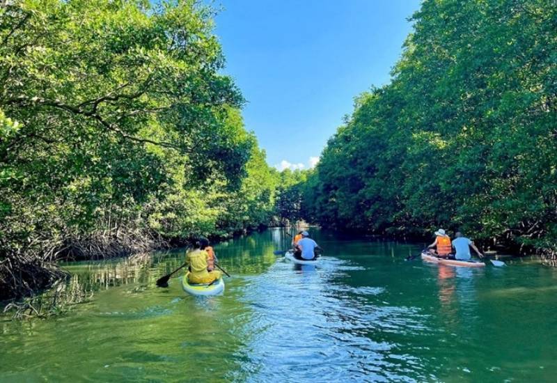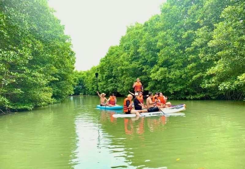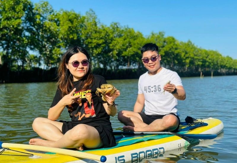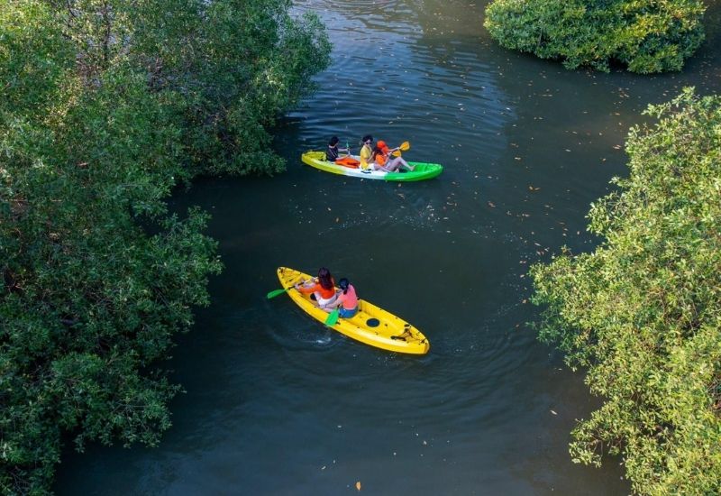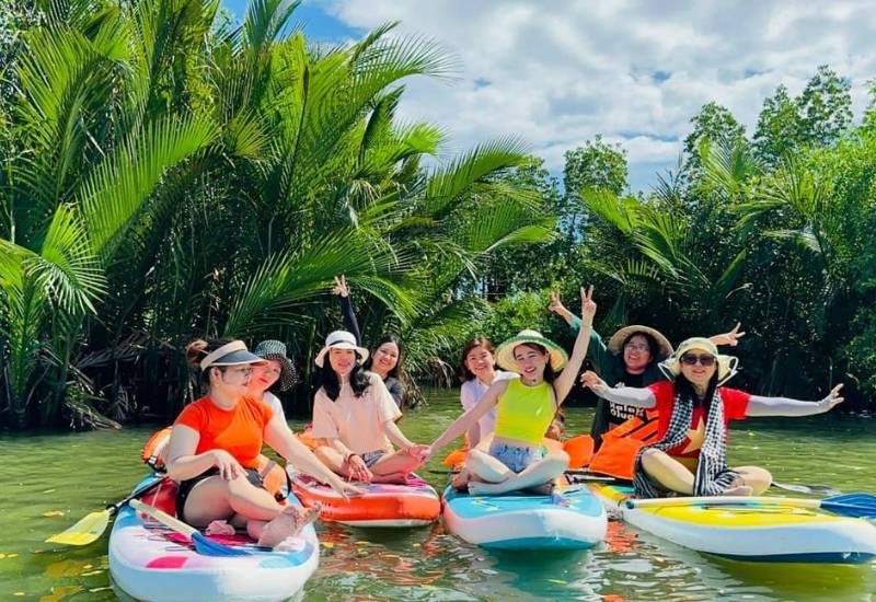 - Tham gia thử thách chèo thuyền trong cồn chim