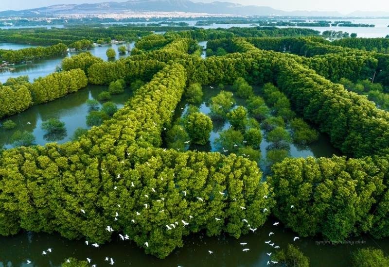 Xuôi theo dòng Đầm Thị Nại, du khách sẽ được hoa mình với không khí trong lành của nơi đây, được ngắm nhìn những đàn chim cùng nhau bay lượn và nhìn ngắm được lá phổi xanh của thành phố Quy Nhơn.