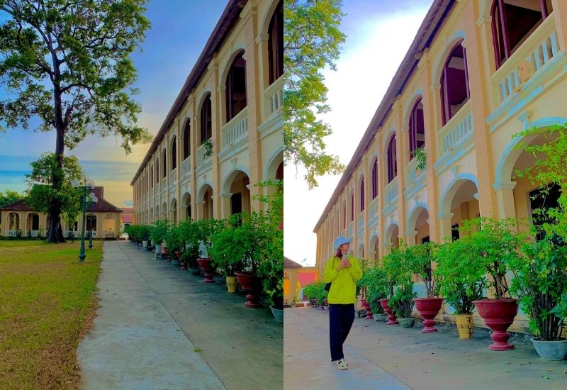 Đến đây, du khách sẽ được chiêm ngưỡng hàng cây Sao Xanh thẳng tắp, nghiêm trang có từ lâu đời khiến cho nơi đây càng trở nên cổ kính và tôn nghiêm.